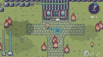 As keeper of the clouds, use the power of clouds and wind to protect the shrine from fire spirits until the rain goddess brings the rain!